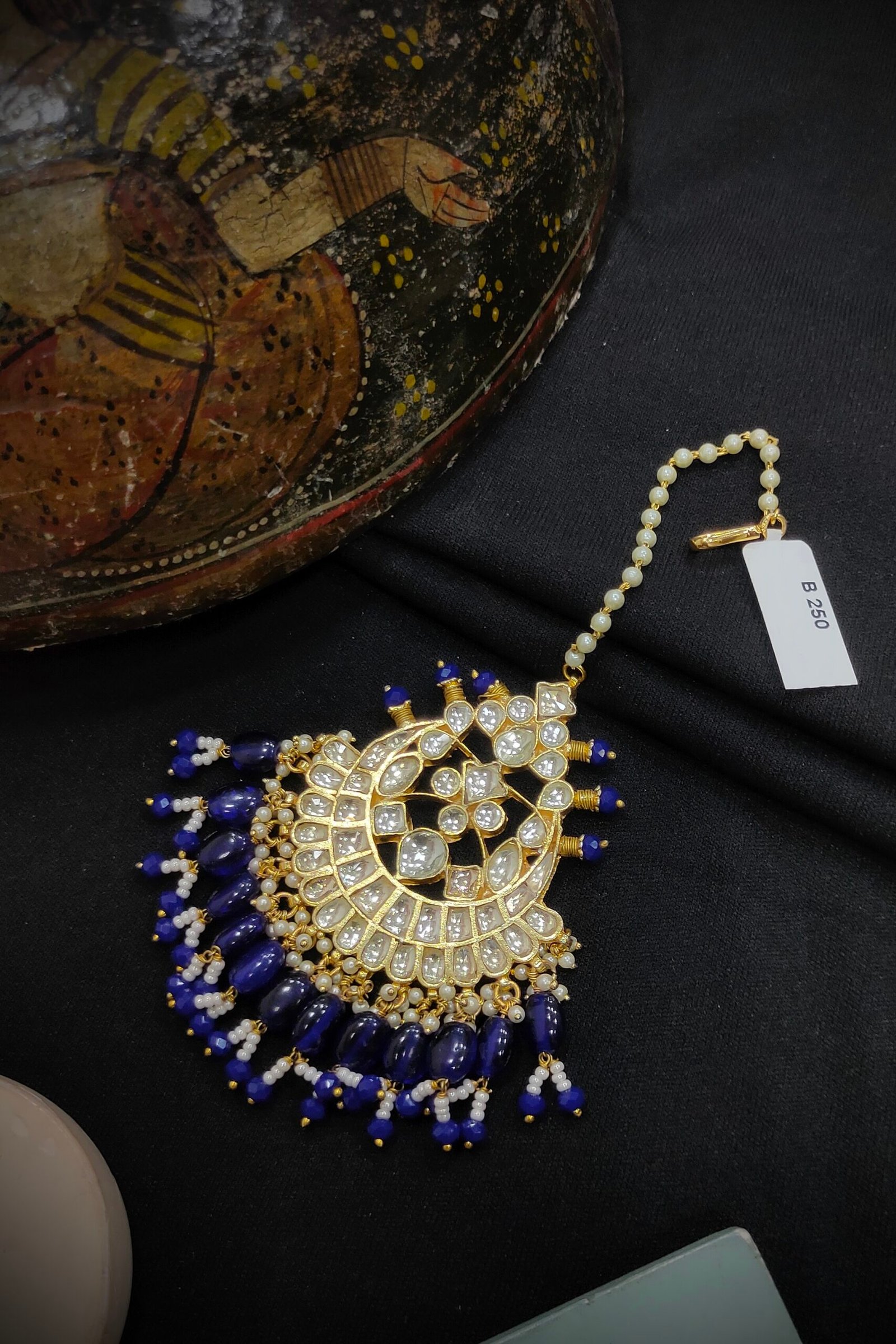 Explore our Pachi/Jadau Kundan MangTika, made from durable Brass and adorned with classic Rajwadi and Gold plating. This traditional piece adds a touch of timeless elegance to any outfit. Elevate your look with our Pachi/Jadau Kundan MangTika, a symbol of Indian heritage and sophistication.