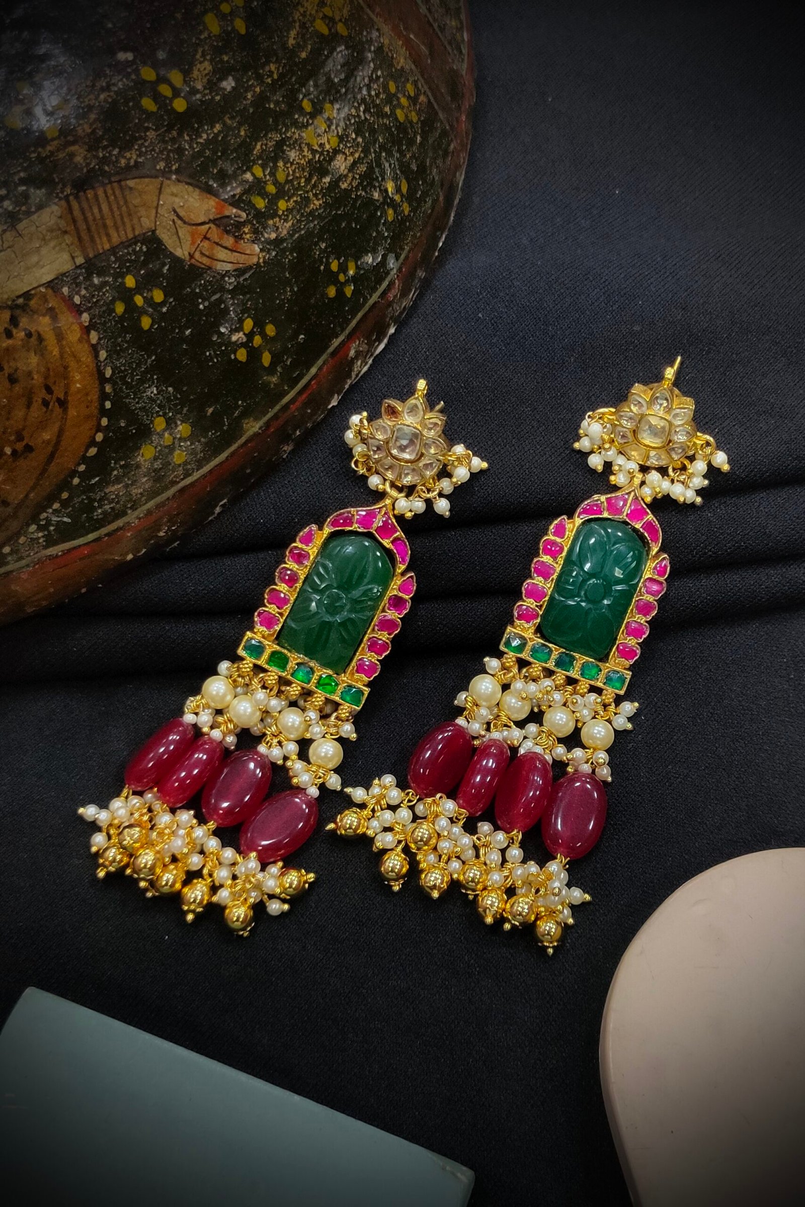 Immerse yourself in regal splendor with our Pachi Kundan/Jadau Sets, meticulously crafted for timeless elegance. Each set features exquisite Pachi stones delicately set on brass, radiating opulence and grace. Adorned with luxurious Gold plating, these sets exude regal charm and sophistication. Elevate your ensemble with the enchanting beauty of our Pachi Kundan/Jadau Sets, perfect for adding a touch of glamour to any occasion. Experience the richness of heritage craftsmanship and indulge in the captivating allure of these exquisite sets.