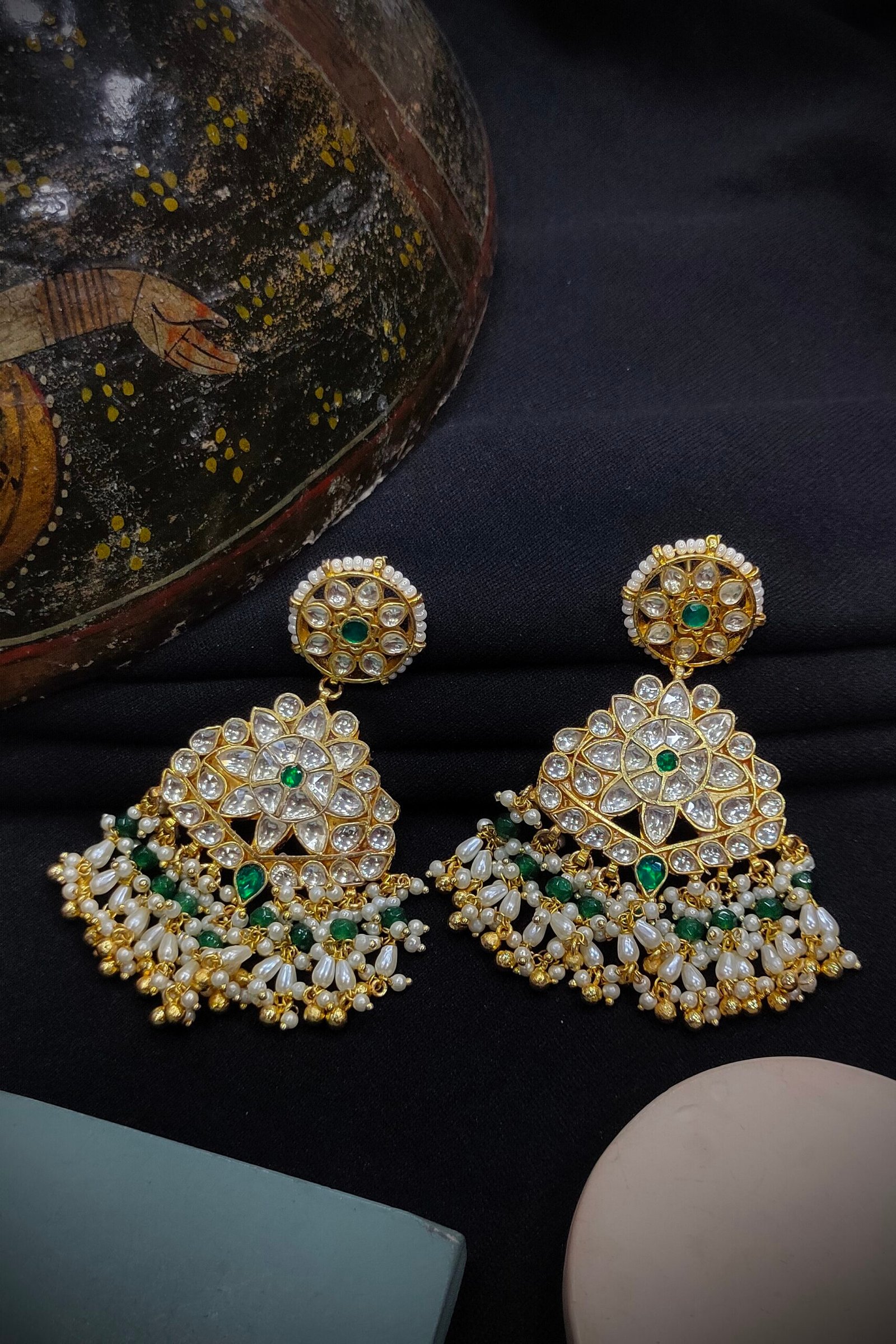 Immerse yourself in regal splendor with our Pachi Kundan/Jadau Sets, meticulously crafted for timeless elegance. Each set features exquisite Pachi stones delicately set on brass, radiating opulence and grace. Adorned with luxurious Gold plating, these sets exude regal charm and sophistication. Elevate your ensemble with the enchanting beauty of our Pachi Kundan/Jadau Sets, perfect for adding a touch of glamour to any occasion. Experience the richness of heritage craftsmanship and indulge in the captivating allure of these exquisite sets.