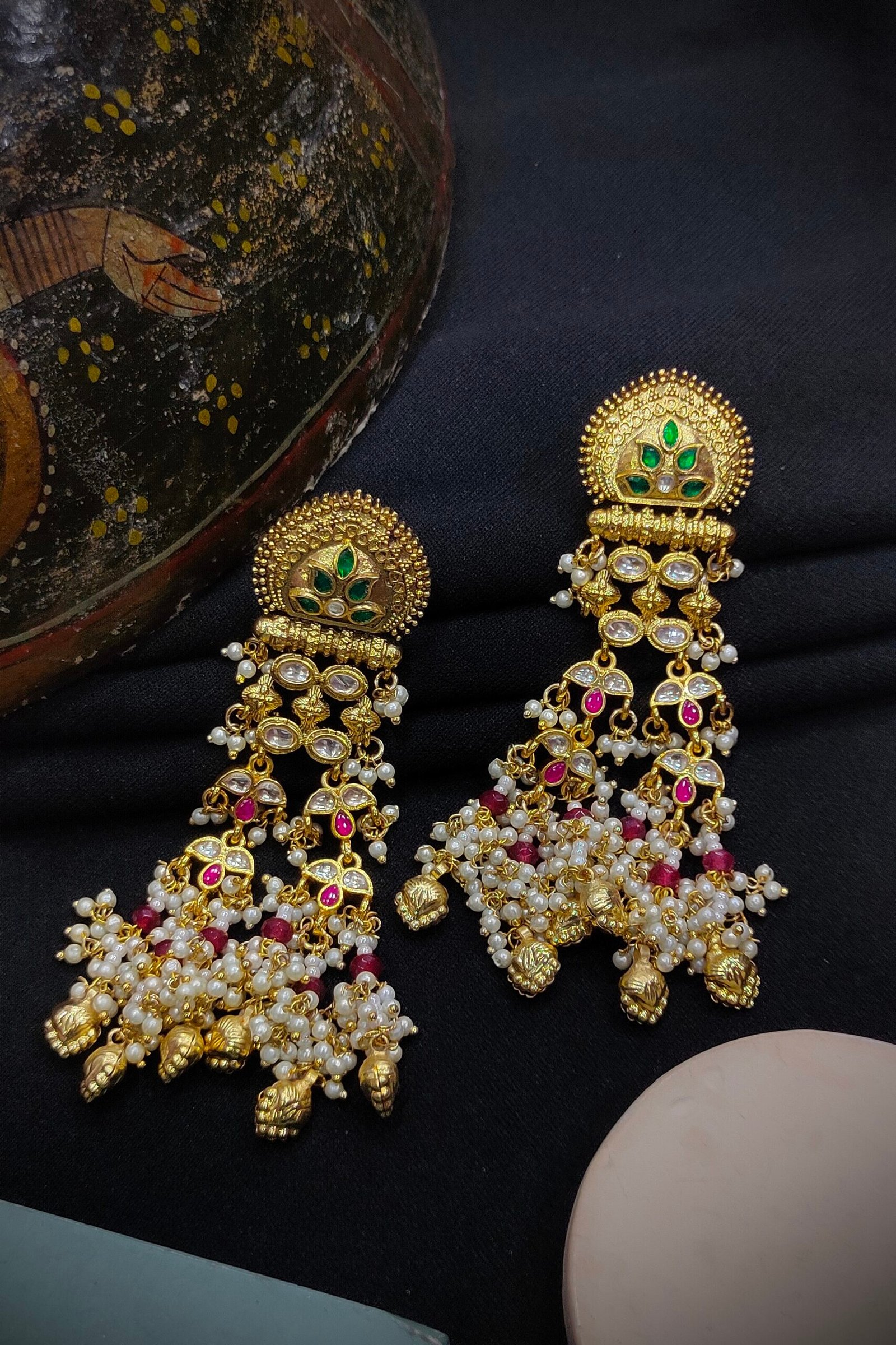 Immerse yourself in regal splendor with our Pachi Kundan/Jadau Sets, meticulously crafted for timeless elegance. Each set features exquisite Pachi stones delicately set on brass, radiating opulence and grace. Adorned with luxurious Gold plating, these sets exude regal charm and sophistication. Elevate your ensemble with the enchanting beauty of our Pachi Kundan/Jadau Sets, perfect for adding a touch of glamour to any occasion. Experience the richness of heritage craftsmanship and indulge in the captivating allure of these exquisite sets.
