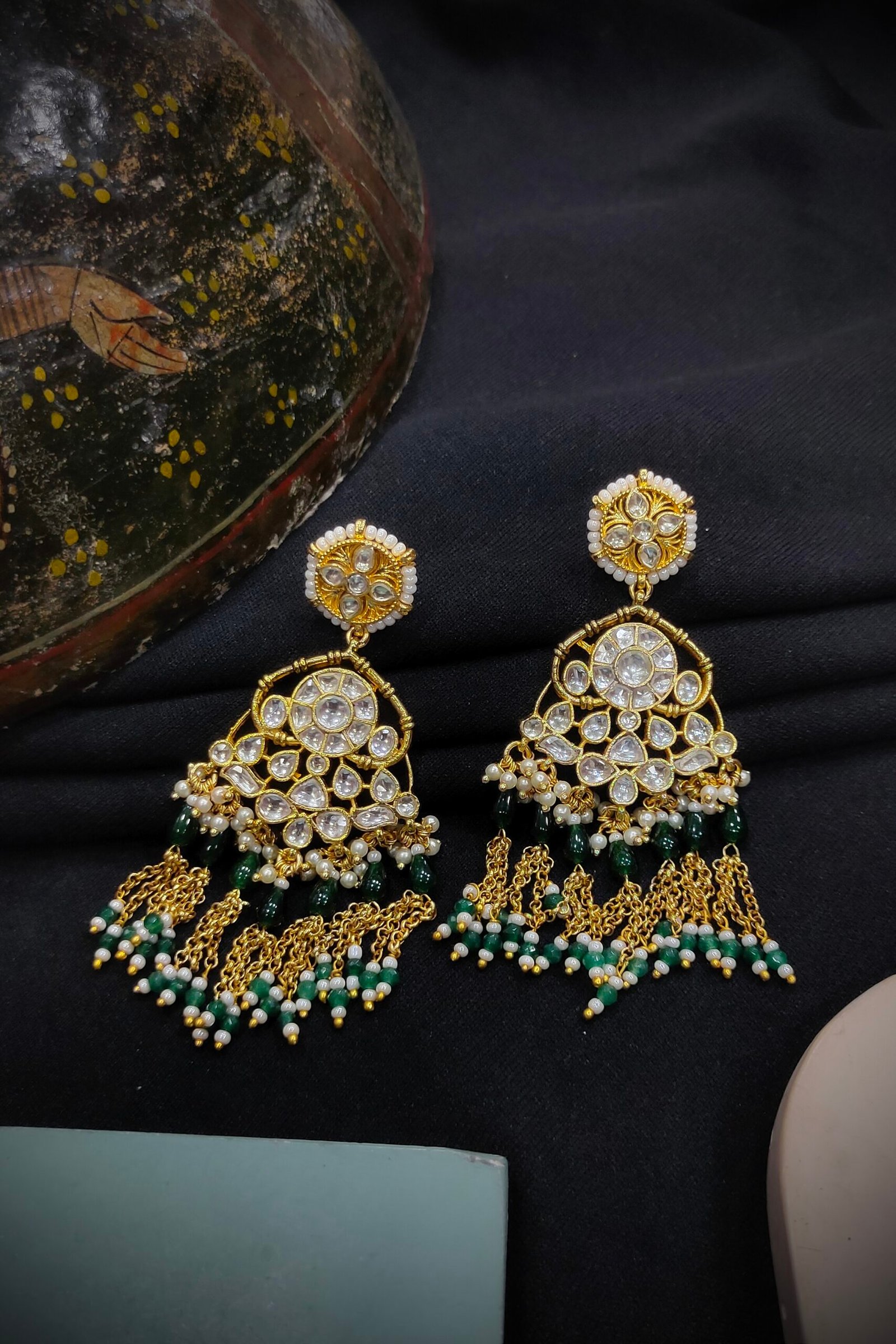 Immerse yourself in regal splendor with our Pachi Kundan/Jadau Sets, meticulously crafted for timeless elegance. Each set features exquisite Pachi stones delicately set on brass, radiating opulence and grace. Adorned with luxurious Gold plating, these sets exude regal charm and sophistication. Elevate your ensemble with the enchanting beauty of our Pachi Kundan/Jadau Sets, perfect for adding a touch of glamour to any occasion. Experience the richness of heritage craftsmanship and indulge in the captivating allure of these exquisite sets.