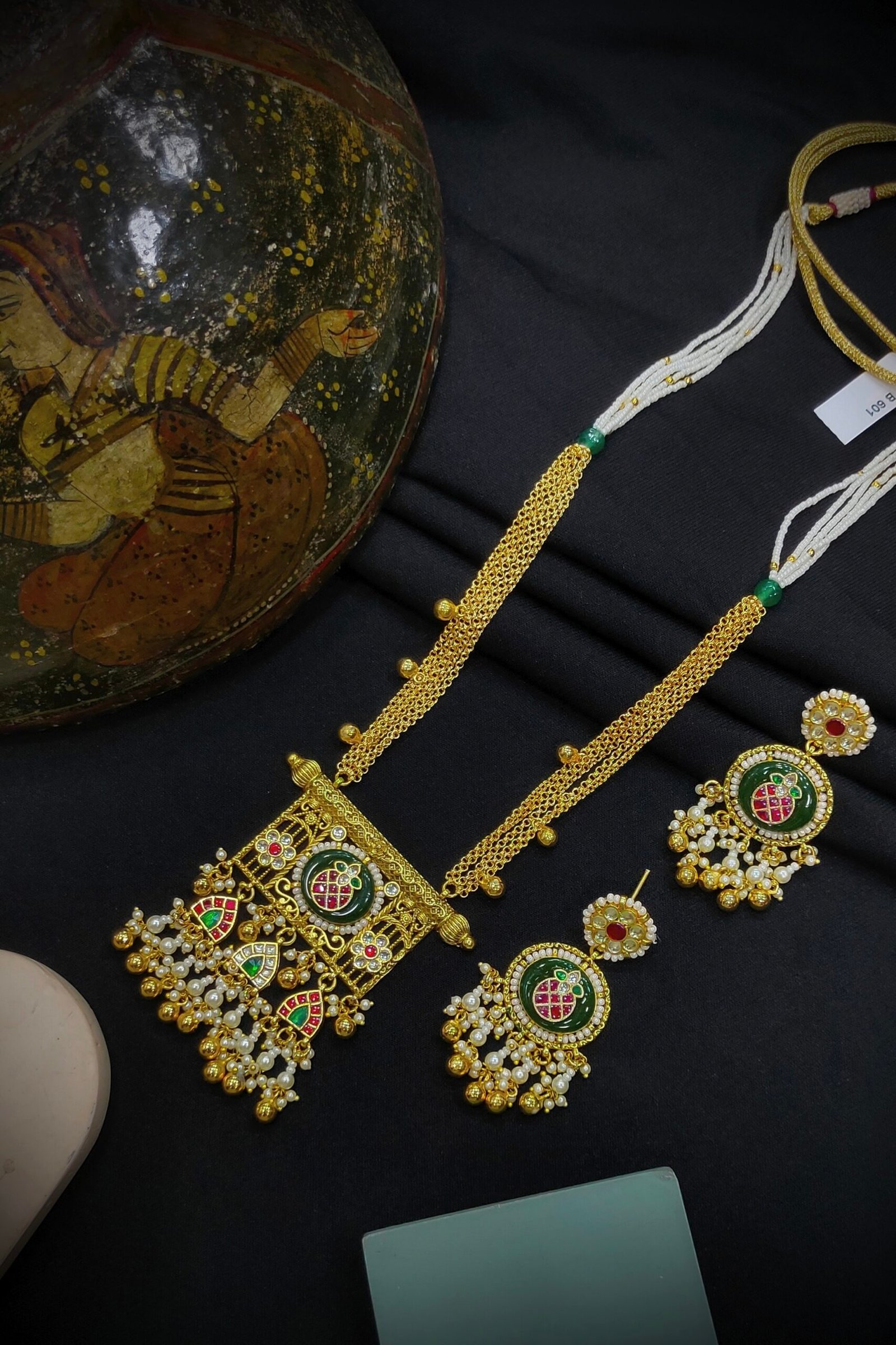 Immerse yourself in regal splendor with our Pachi Kundan/Jadau Sets, meticulously crafted for timeless elegance. Each set features exquisite Pachi stones delicately set on brass, radiating opulence and grace. Adorned with luxurious Gold plating, these sets exude regal charm and sophistication. Elevate your ensemble with the enchanting beauty of our Pachi Kundan/Jadau Sets, perfect for adding a touch of glamour to any occasion. Experience the richness of heritage craftsmanship and indulge in the captivating allure of these exquisite sets.