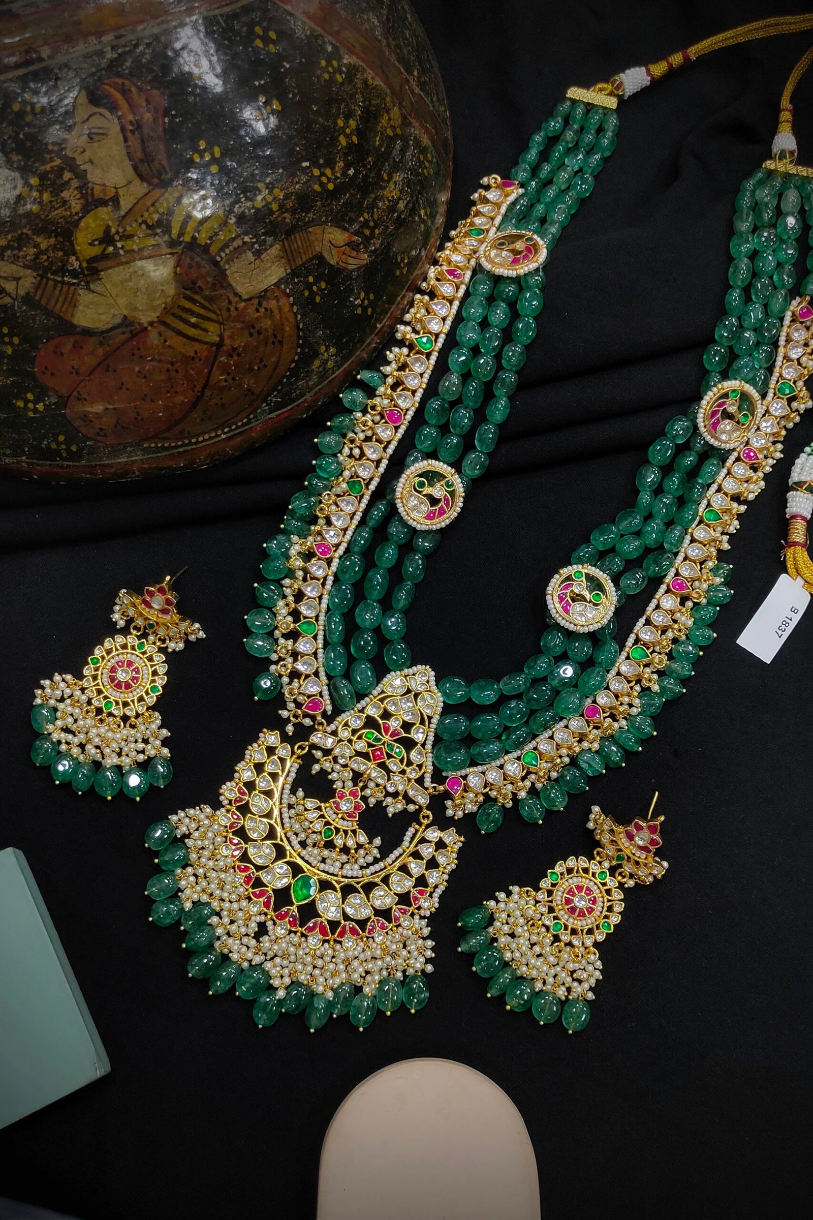 Immerse yourself in regal splendor with our Pachi Kundan/Jadau Sets, meticulously crafted for timeless elegance. Each set features exquisite Pachi stones delicately set on brass, radiating opulence and grace. Adorned with luxurious Gold plating, these sets exude regal charm and sophistication. Elevate your ensemble with the enchanting beauty of our Pachi Kundan/Jadau Sets, perfect for adding a touch of glamour to any occasion. Experience the richness of heritage craftsmanship and indulge in the captivating allure of these exquisite sets.