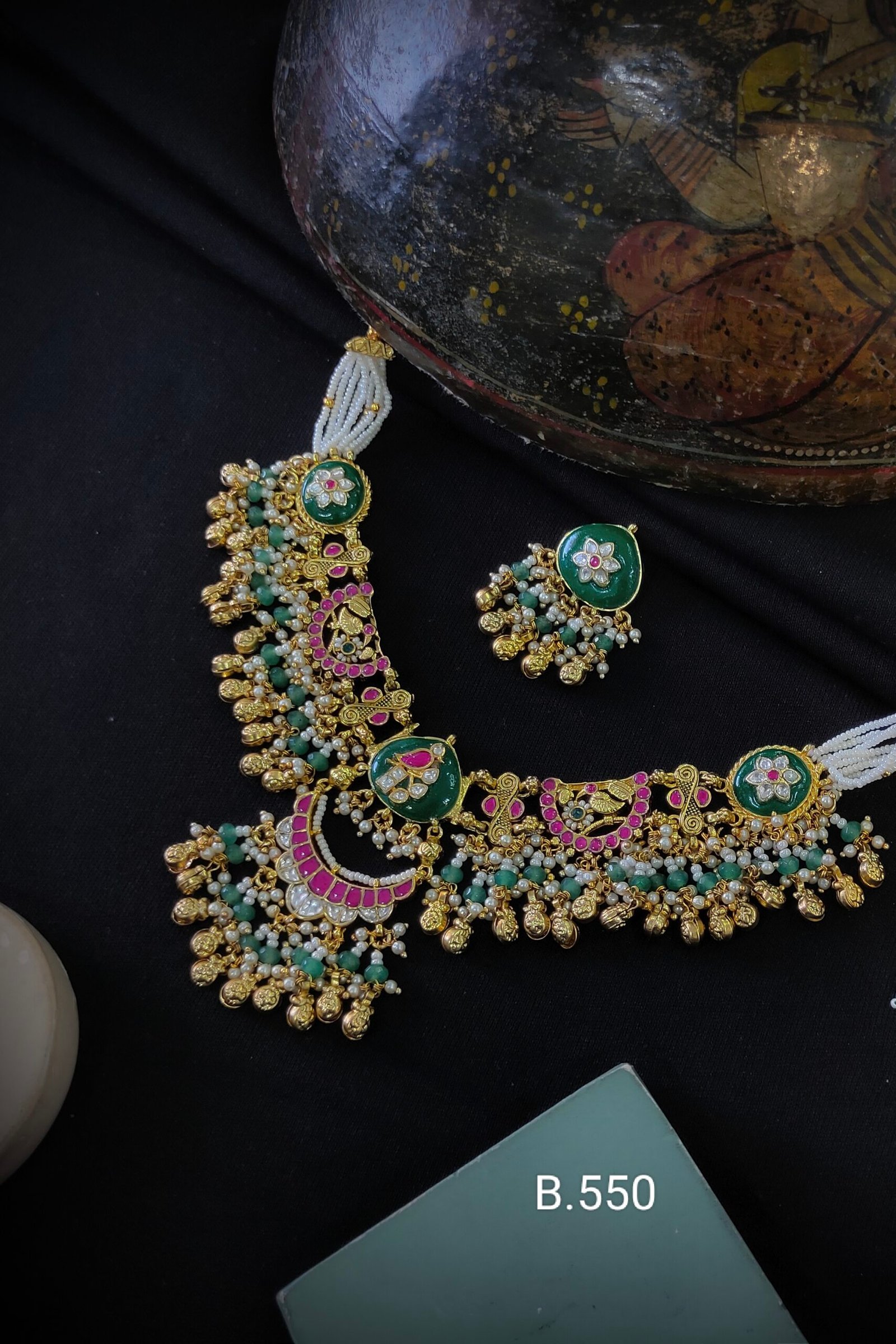 Make a statement of timeless elegance with our Pachi Kundan Choker & Necklace Set, a luxurious blend of traditional craftsmanship and regal charm. This set features a beautifully handcrafted choker for a bold, elegant neckline and a matching long necklace for layered grandeur – both adorned with authentic Pachi Kundan stones and detailed meenakari/enamel work.