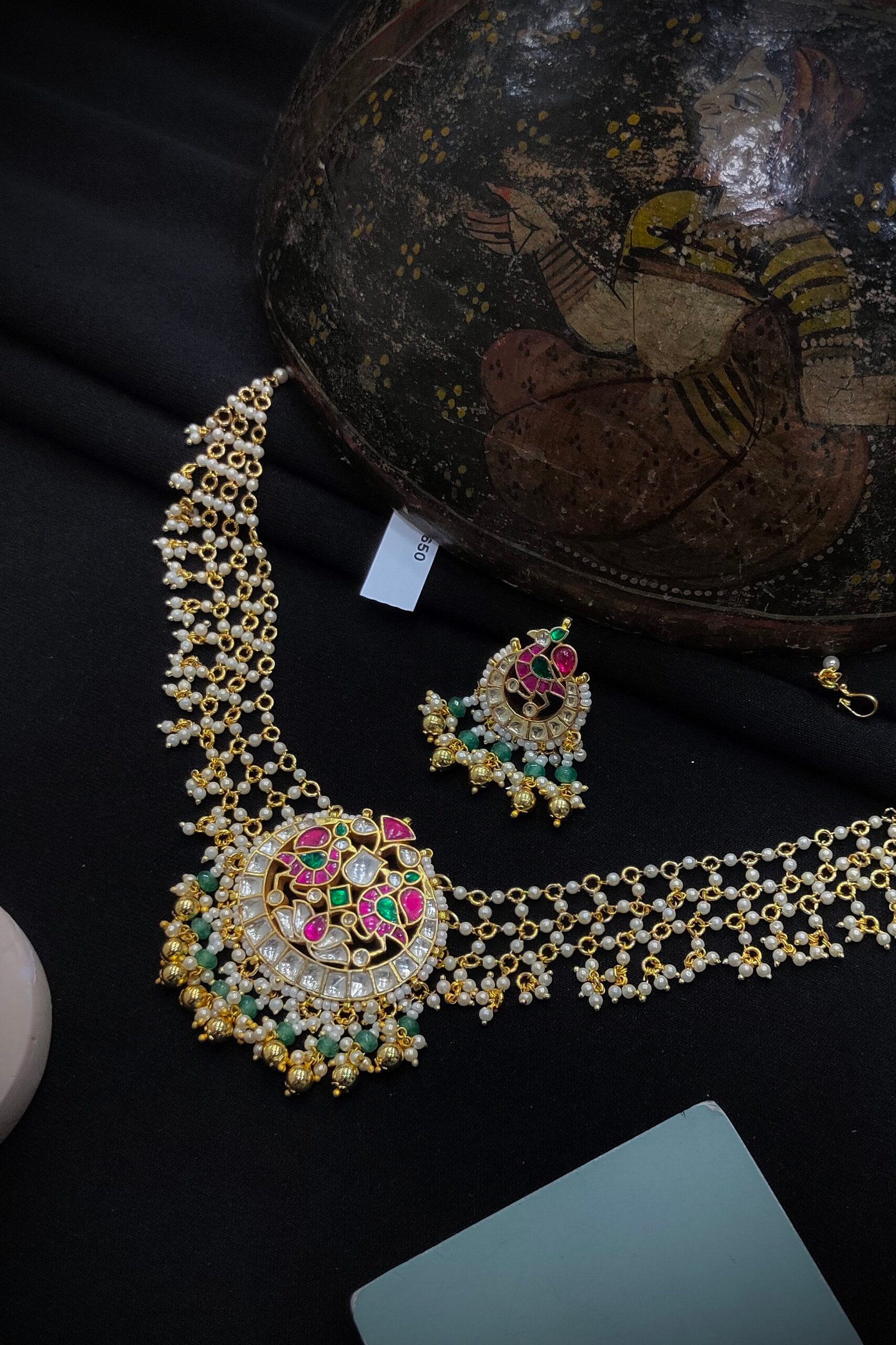 Make a statement of timeless elegance with our Pachi Kundan Choker & Necklace Set, a luxurious blend of traditional craftsmanship and regal charm. This set features a beautifully handcrafted choker for a bold, elegant neckline and a matching long necklace for layered grandeur – both adorned with authentic Pachi Kundan stones and detailed meenakari/enamel work.