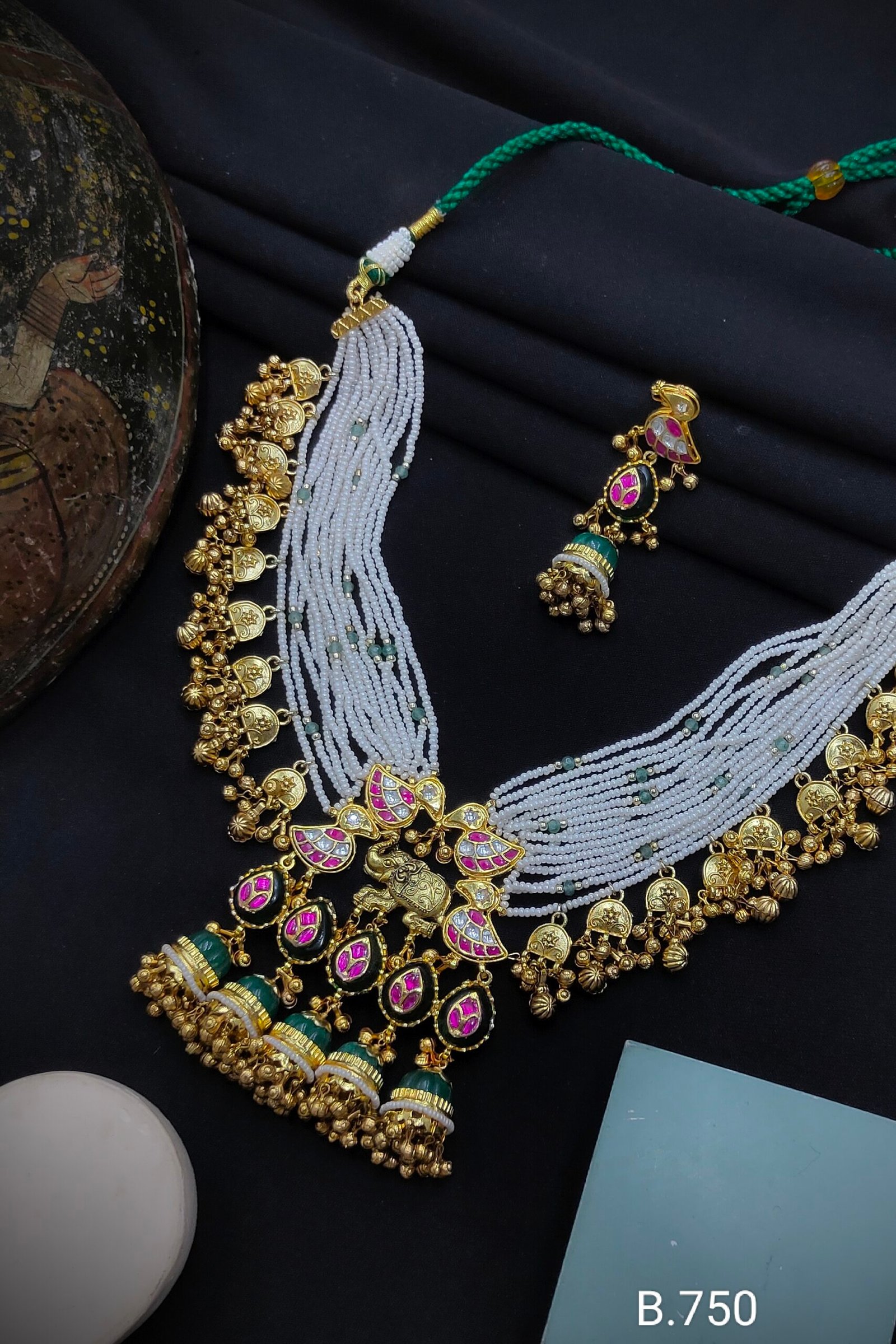 Make a statement of timeless elegance with our Pachi Kundan Choker & Necklace Set, a luxurious blend of traditional craftsmanship and regal charm. This set features a beautifully handcrafted choker for a bold, elegant neckline and a matching long necklace for layered grandeur – both adorned with authentic Pachi Kundan stones and detailed meenakari/enamel work.