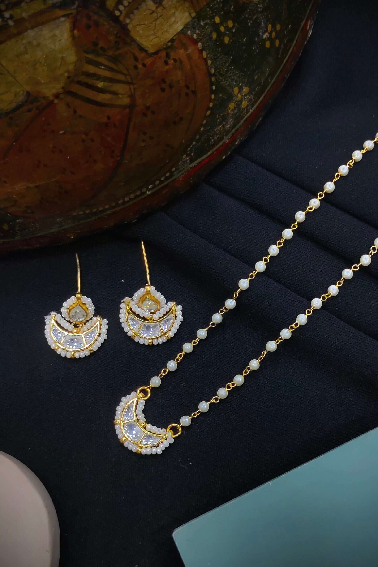 “Elegant and traditional, Pachi Kundan pendant sets feature intricate handcrafted designs adorned with vibrant gemstones and rich enamel work. Perfect for festive occasions and weddings, these sets add a royal charm to any outfit.”