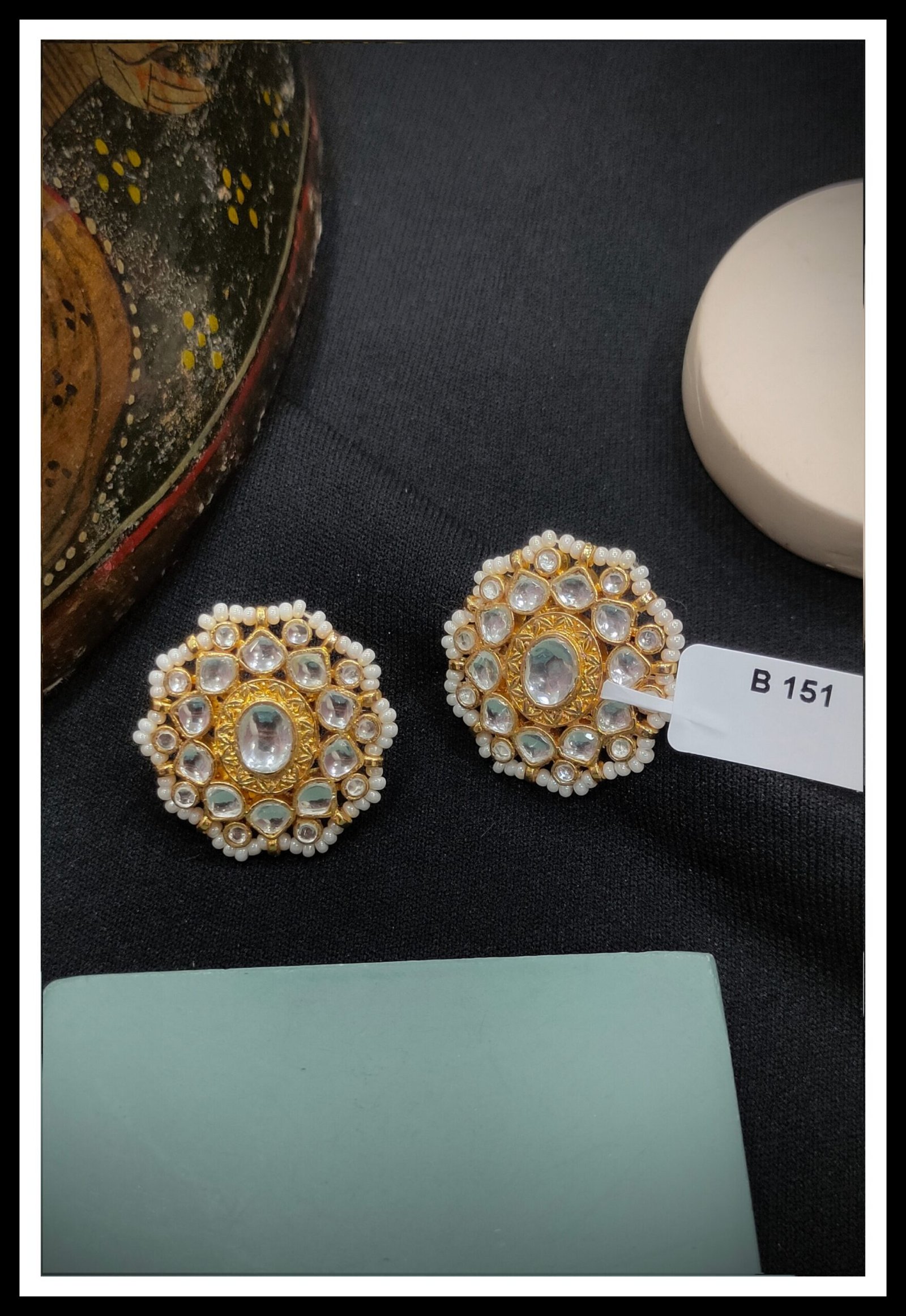Pachi Kundan earring tops are elegant, traditional earrings that highlight the unique pachi style of kundan work. Unlike polished or finely cut stones, pachi kundan uses raw, uncut, or roughly shaped gemstones, which give a rustic and authentic appeal. The stones are set in gold or gold-plated metal, typically in floral or abstract patterns, creating a classic yet earthy look.