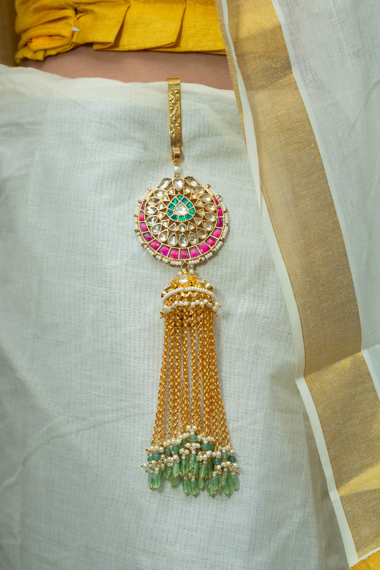 Elevate your style with our Pachi Kundan [Jadau Kundan] Juda and Kamar Belts, blending traditional elegance with contemporary flair. Crafted from Brass and Pachi Stone [Jadau Stone], these belts feature exquisite Jadau/Pachi Kundan stones for a touch of opulence. Enhanced with a Gold Plating , they offer versatile sophistication for any occasion. Complete your ensemble with our Pachi Kundan [Jadau Kundan] Juda and Kamar Belts, redefining traditional accessories with modern charm